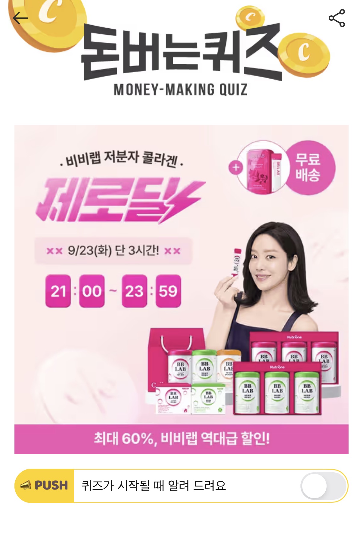 캐시워크 돈버는퀴즈 정답 뉴트리원 비비랩 저분자 콜라겐