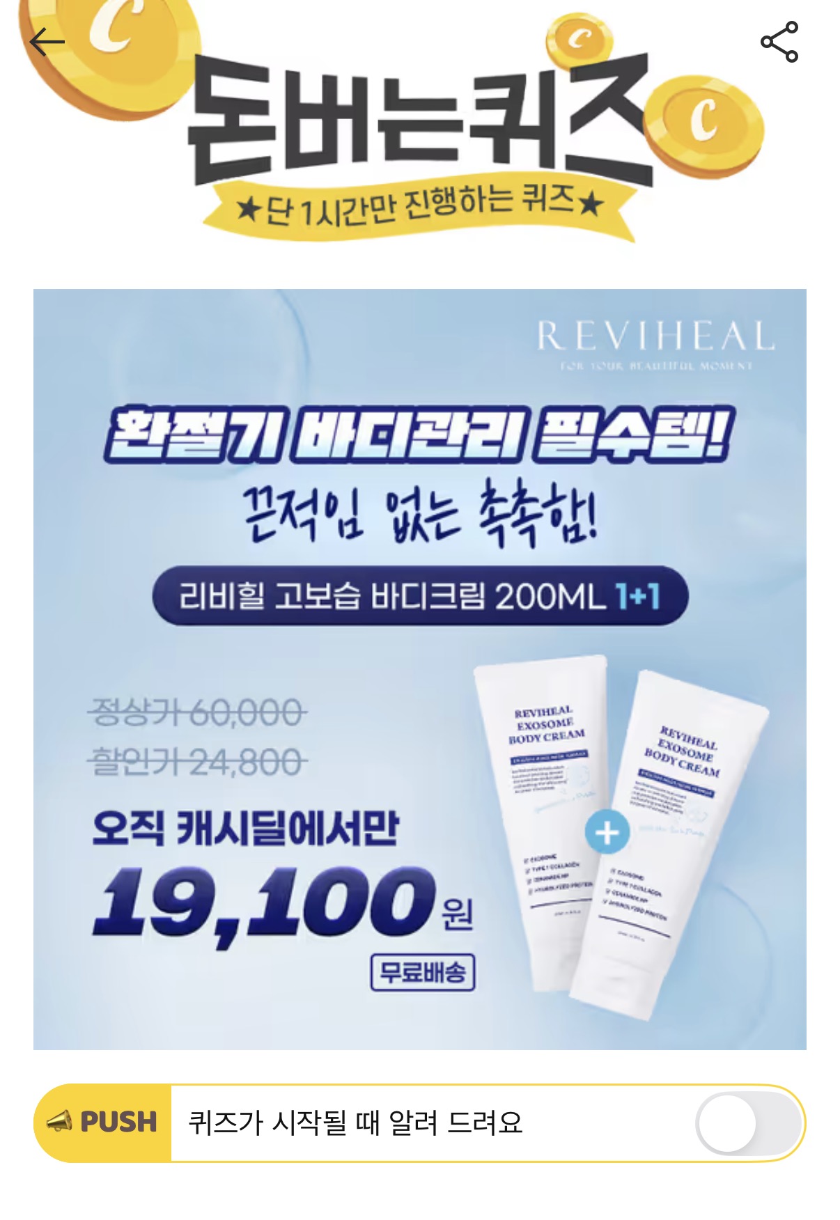 캐시워크 돈버는퀴즈 정답 리비힐 바디크림 ㄴㄴㄴㅅ