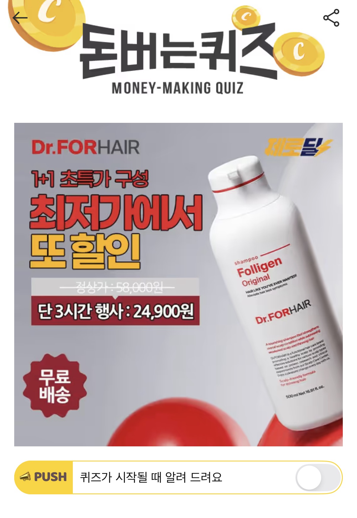 캐시워크 돈버는퀴즈 정답 닥터포헤어 폴리젠 오리지널 샴푸&트리트먼트