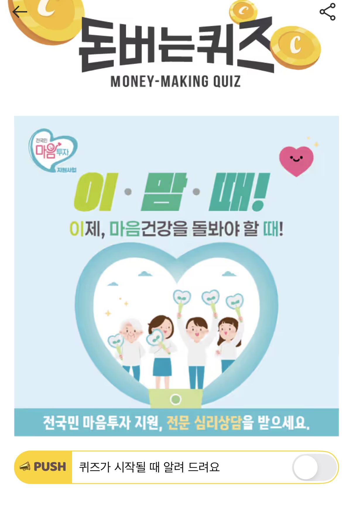 캐시워크 돈버는퀴즈 정답 전국민 마음투자 이.맘.때 ㅁㅇㄱㄱ