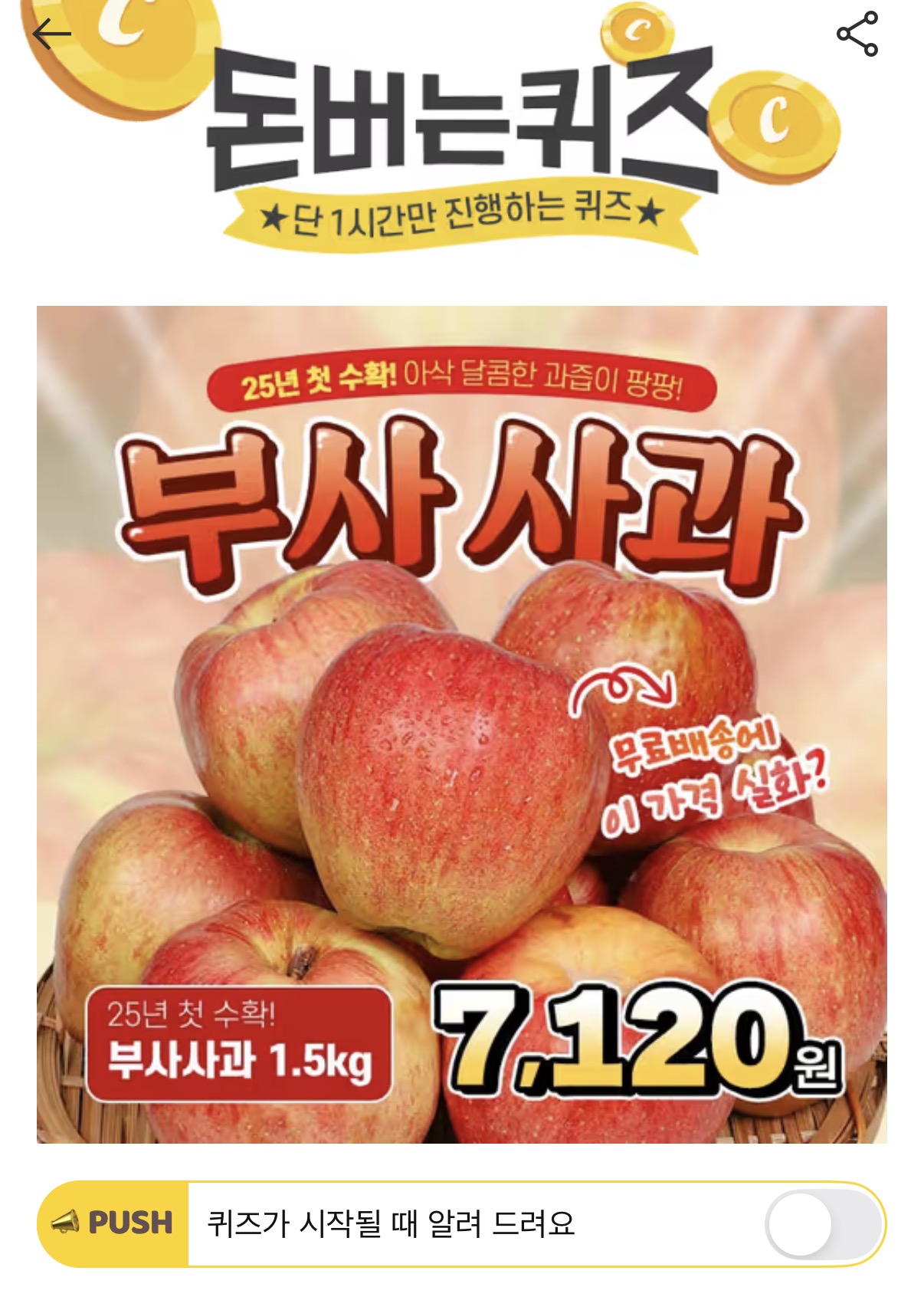 캐시워크 돈버는퀴즈 정답 캐시딜 신선하랑 햇 부사사과