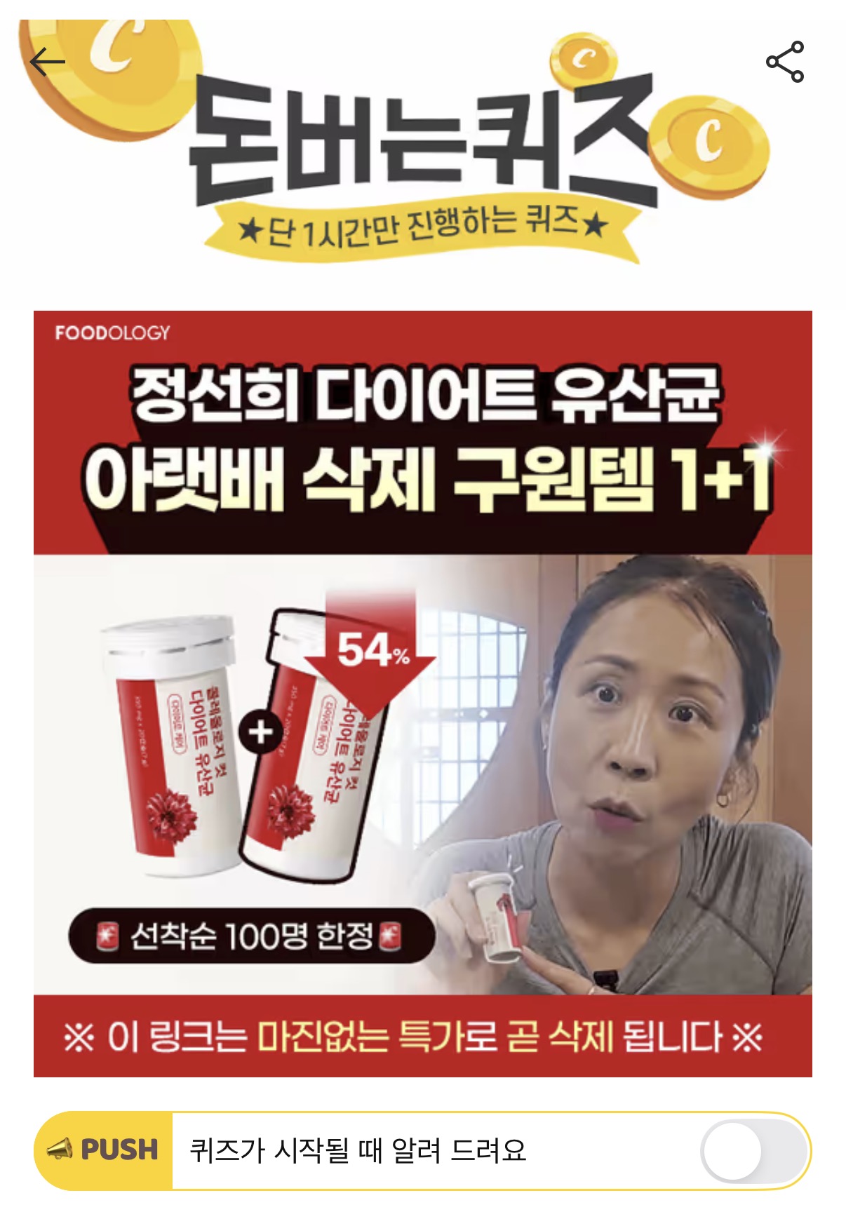 | 캐시워크 돈버는퀴즈 정답 종근당건강 락토핏 생유산균 코어 6통 초특가 00,000원 (0) | 2025.10.29 |