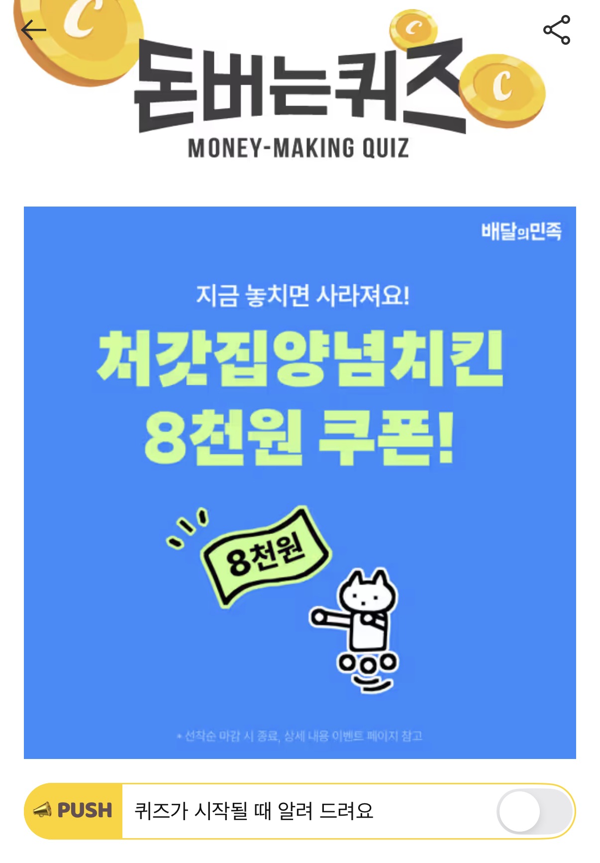 캐시워크 돈버는퀴즈 정답 배달의민족 ㅁㄹㅎㄷㄱ