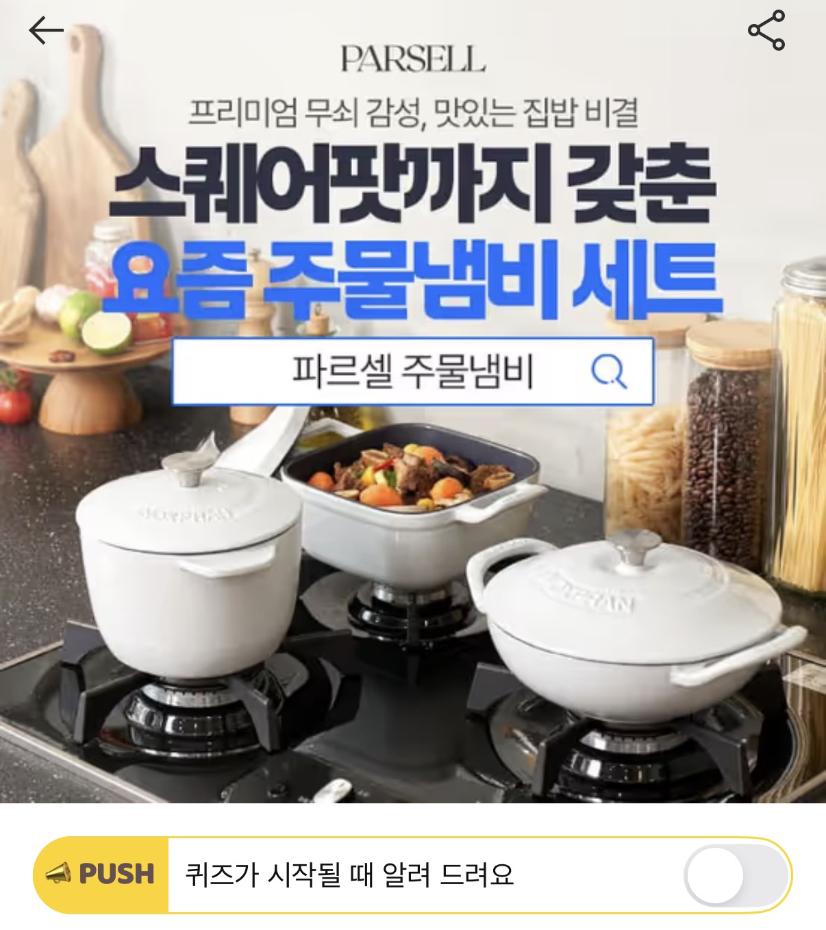캐시워크 돈버는퀴즈 정답 파르셀 주물냄비