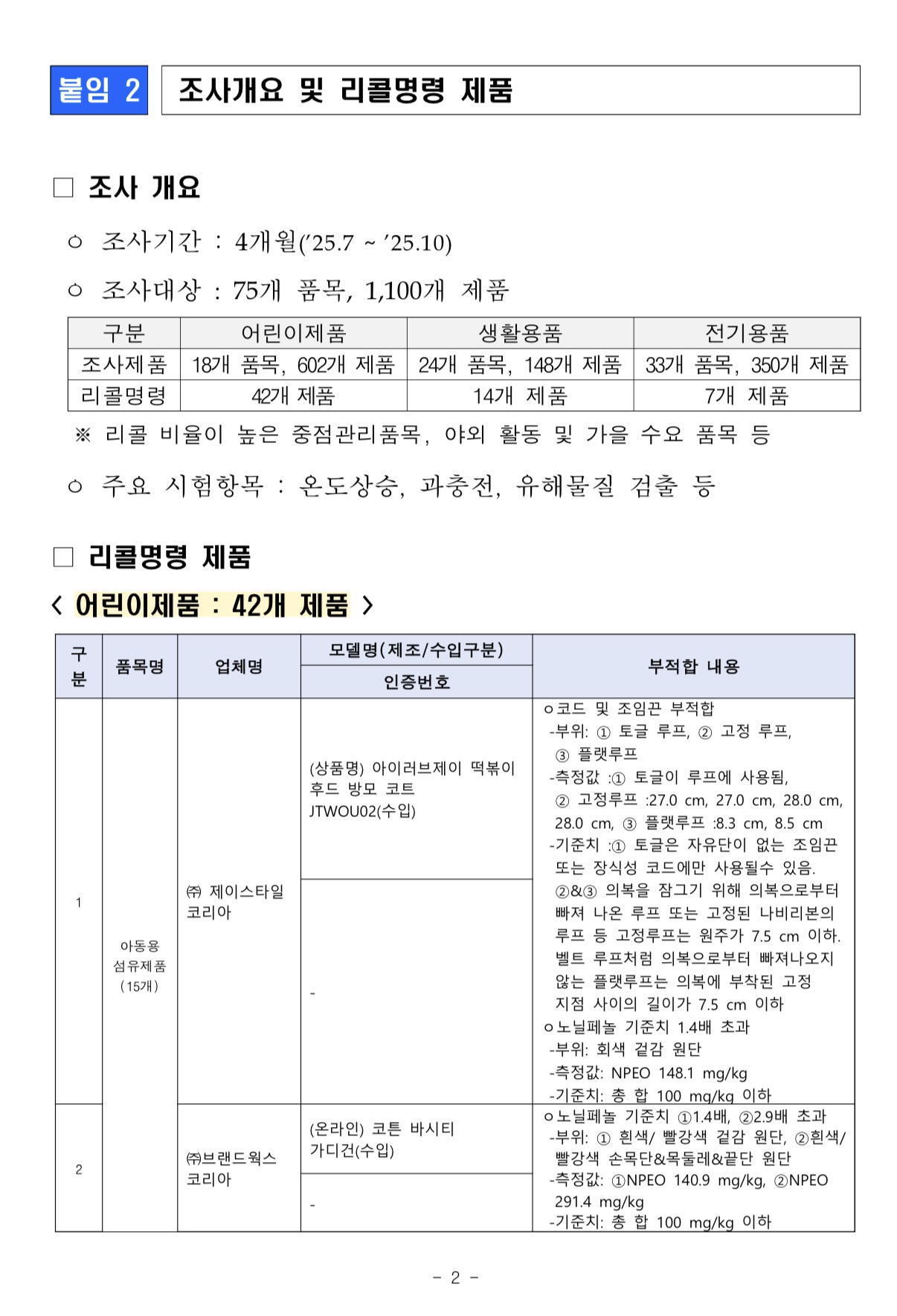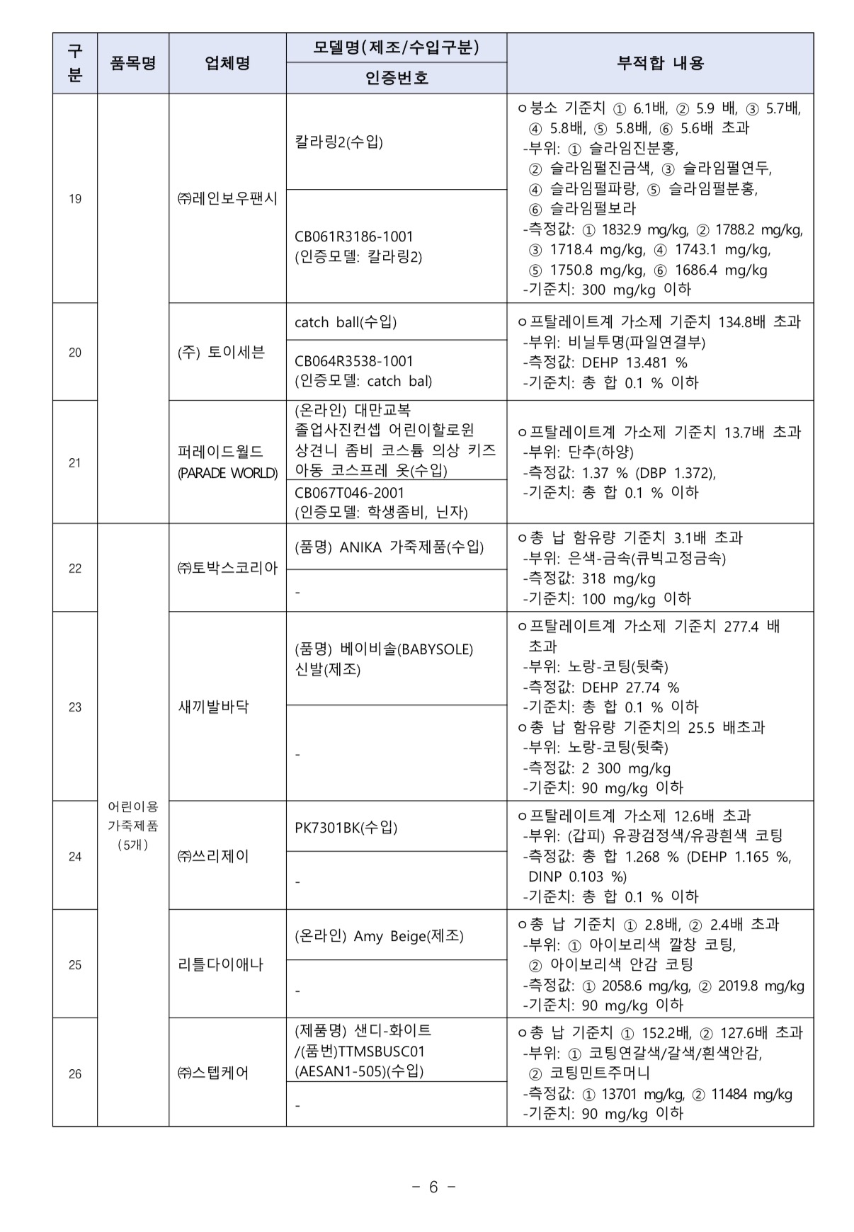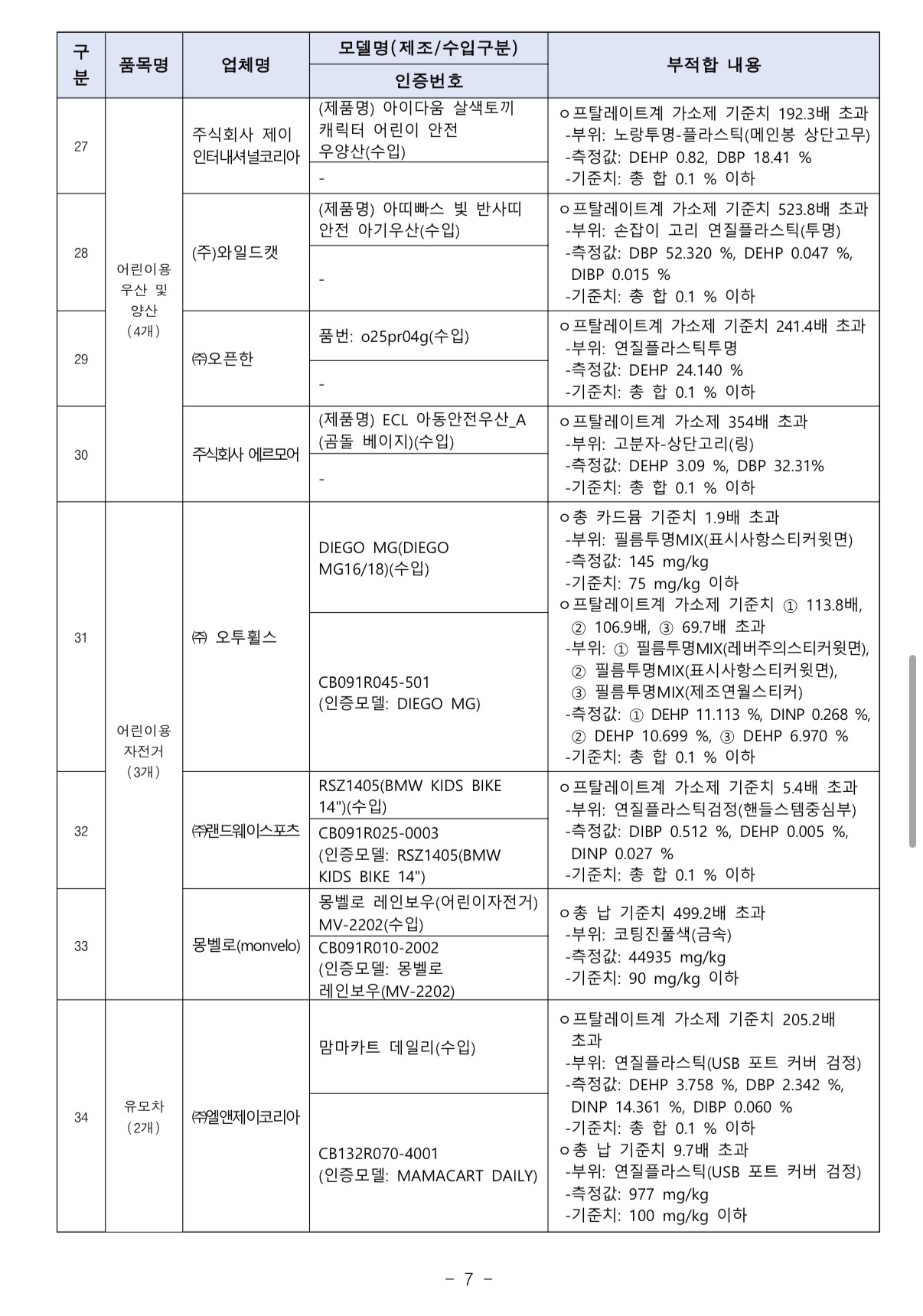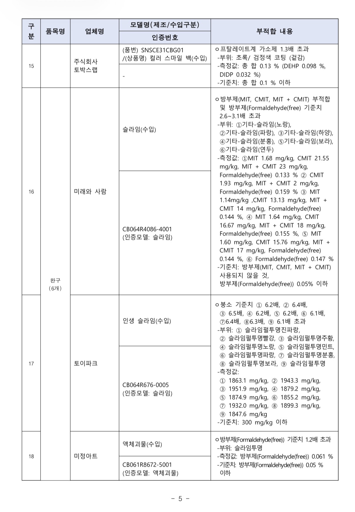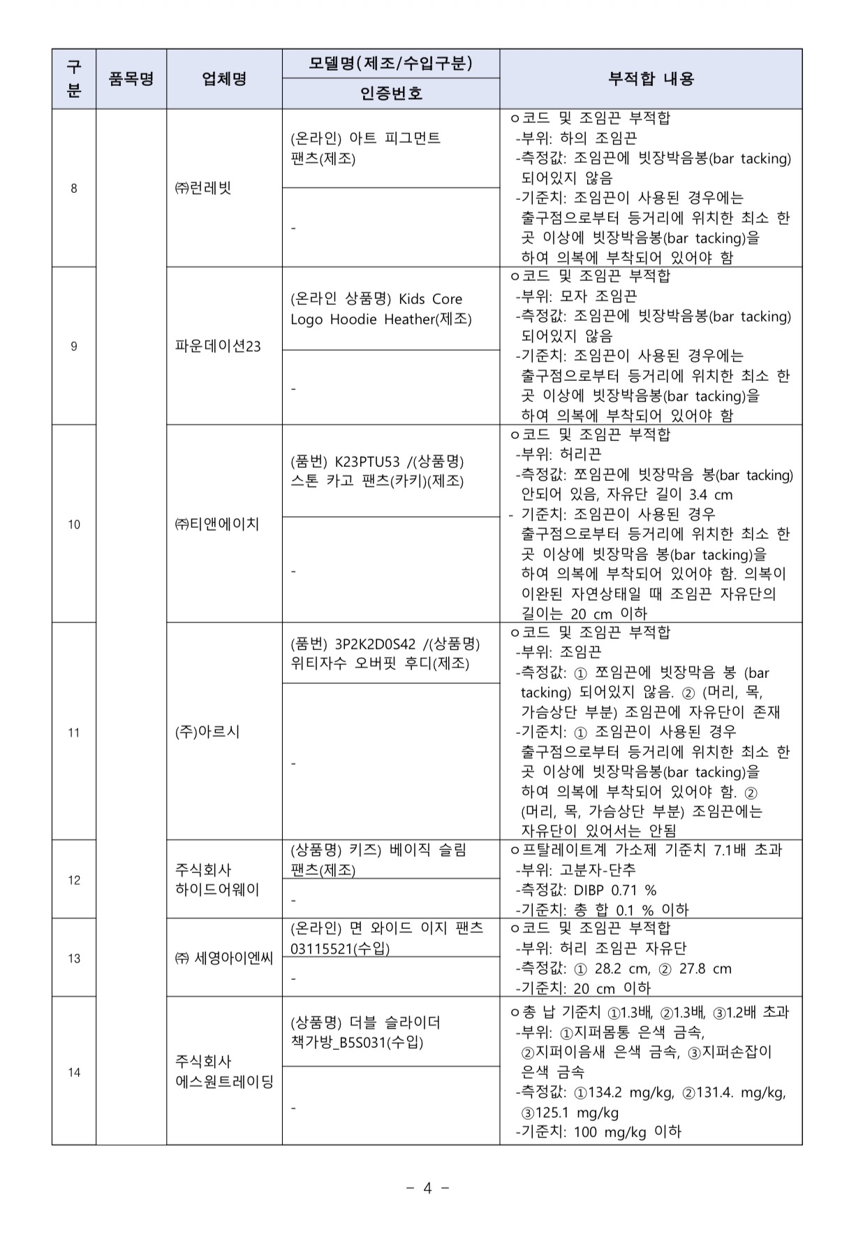 큰 회사 이름도 보이네요. 해당품목만 시정명령 내려온거네요.