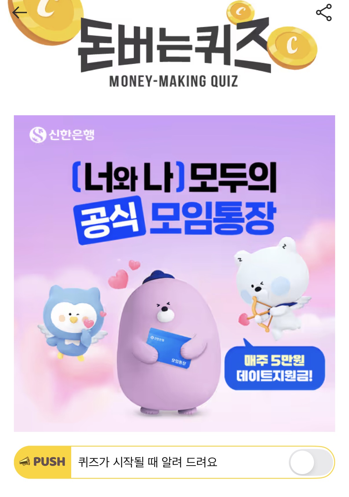 캐시워크 돈버는퀴즈 정답 신한은행 OOO커플