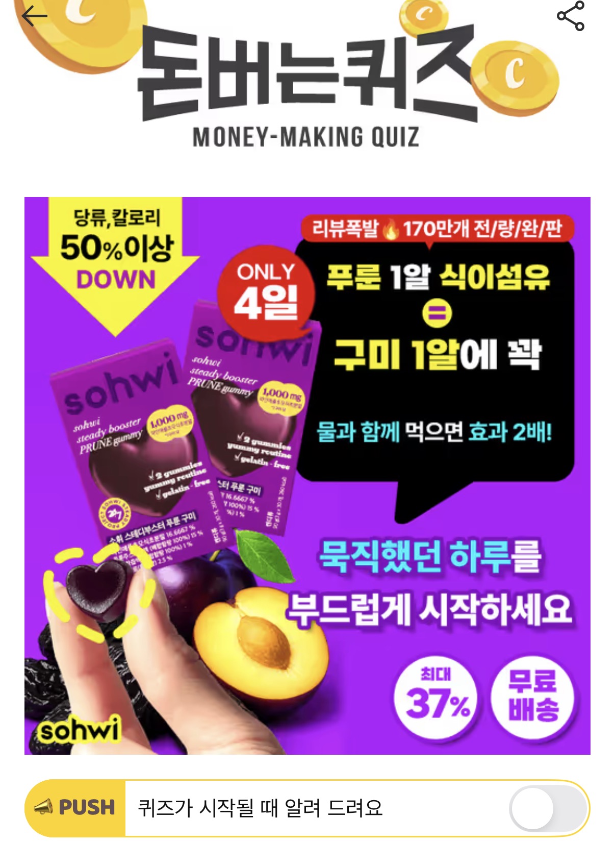 캐시워크 돈버는퀴즈 정답 소휘 푸룬구미