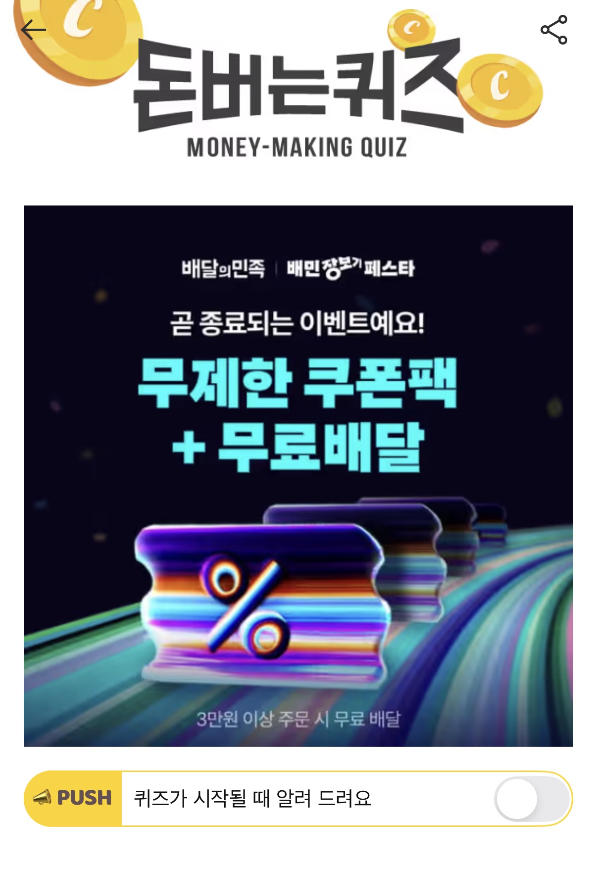 캐시워크 돈버는퀴즈 정답 배달의민족 배민장보기페스타