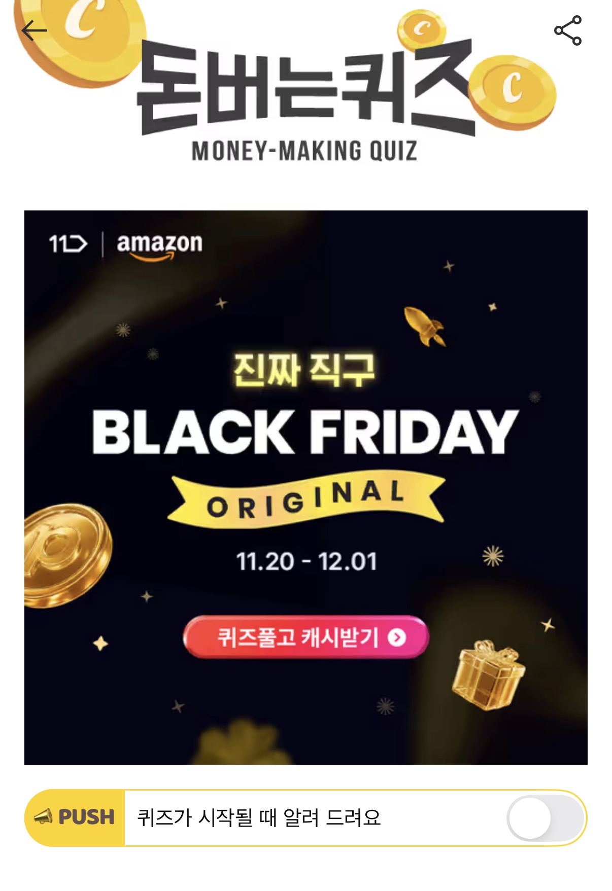 캐시워크 돈버는퀴즈 정답 11번가 아마존 블프 라이브 ㅊㅌㅇ