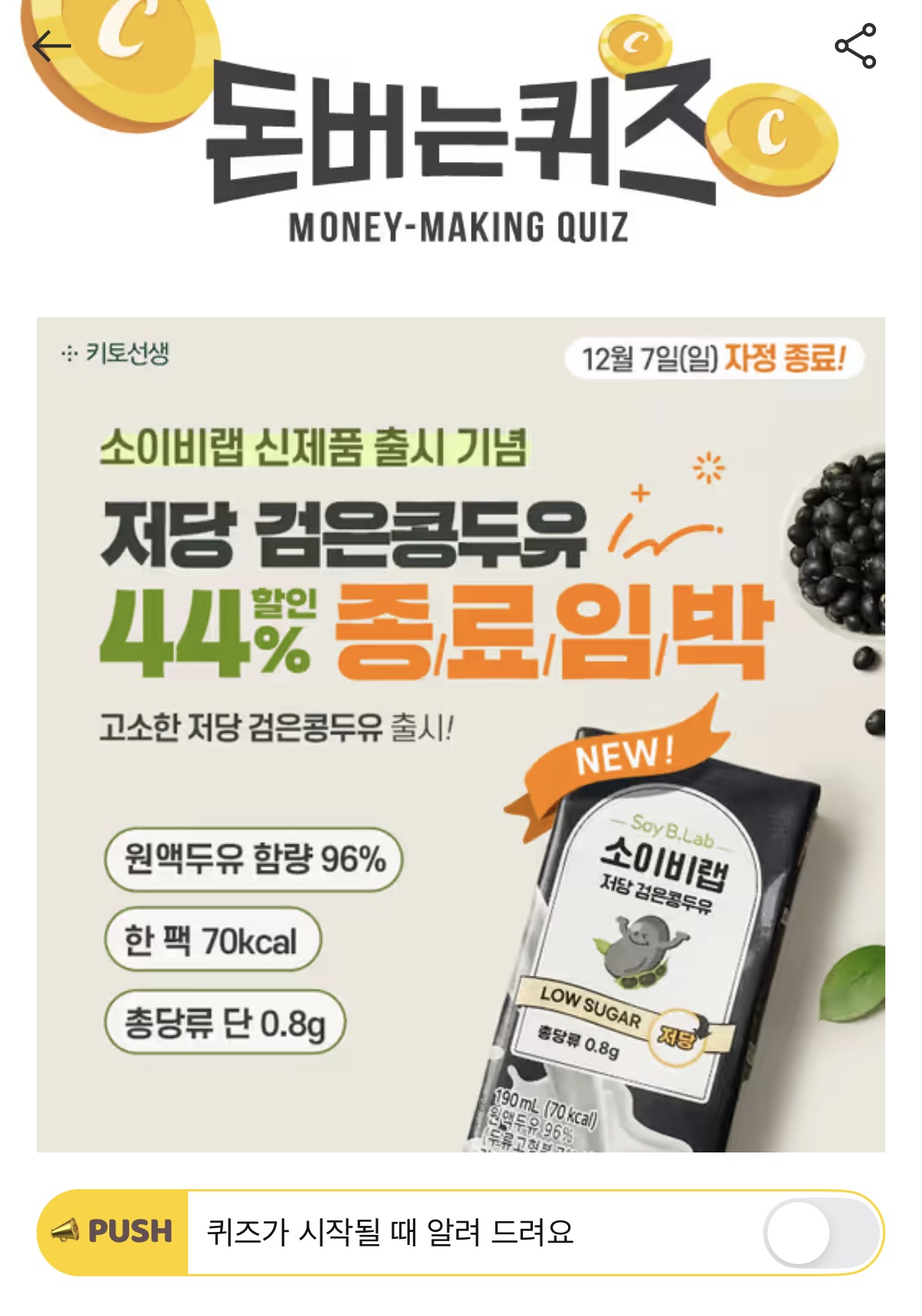 캐시워크 돈버는퀴즈 정답 소이비랩 저당 검은콩두유