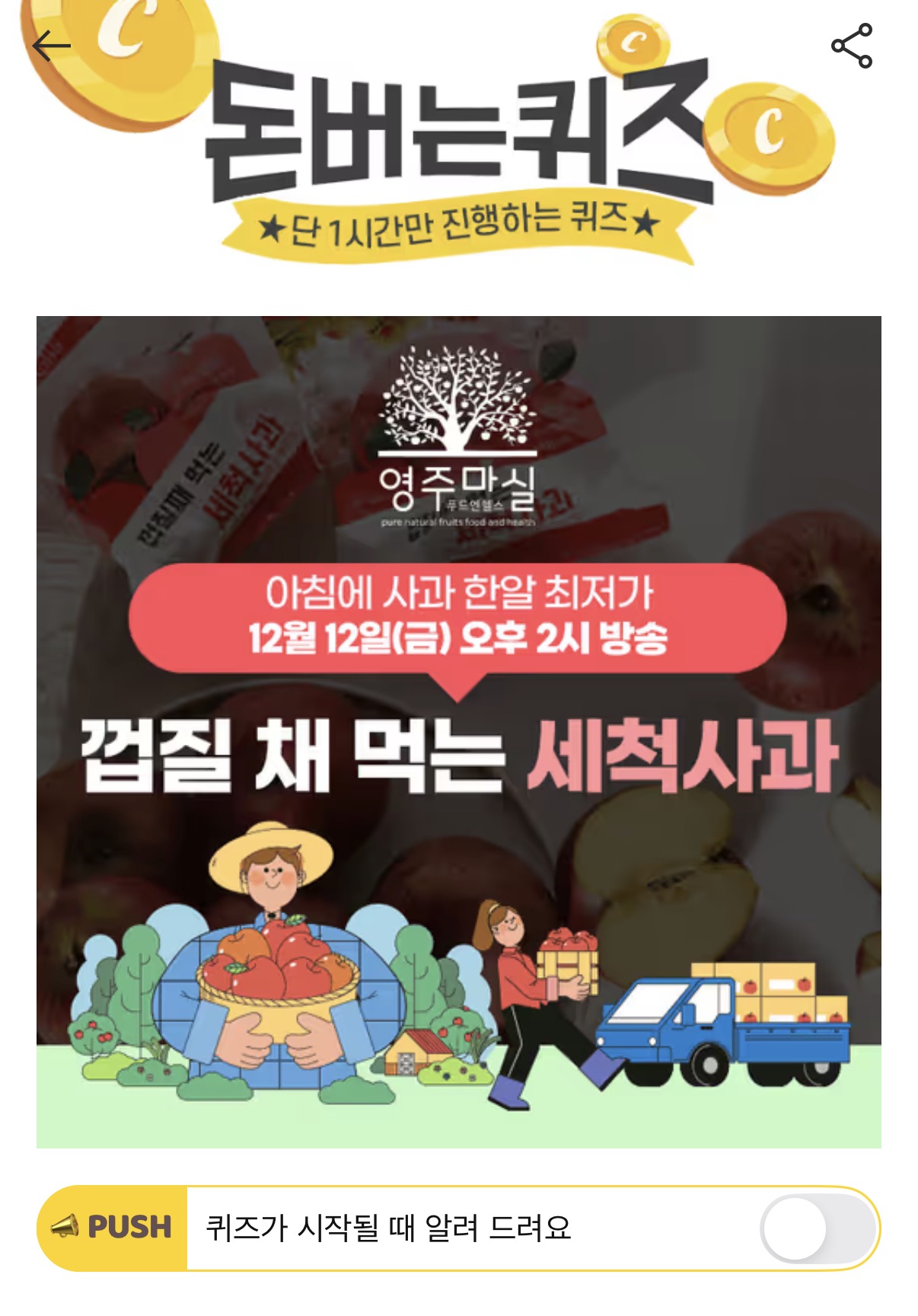 캐시워크 돈버는퀴즈 정답 영주마실 ㅈㅁㅋ TOPS 20% 성수팝업라이브