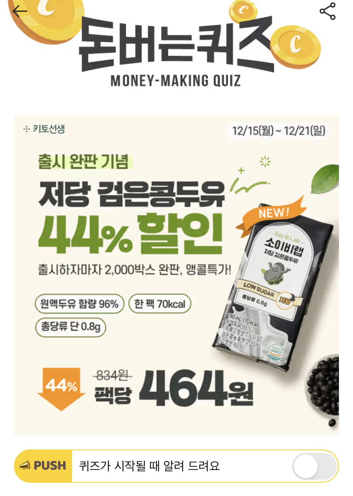 캐시워크 돈버는퀴즈 정답 소이비랩 검은콩두유