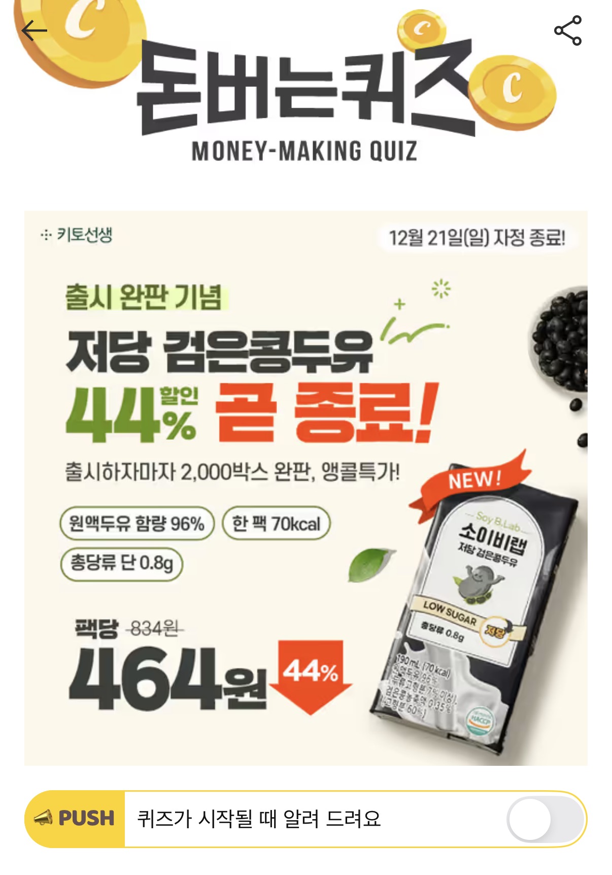 캐시워크 돈버는퀴즈 정답 소이비랩 저당 검은콩두유