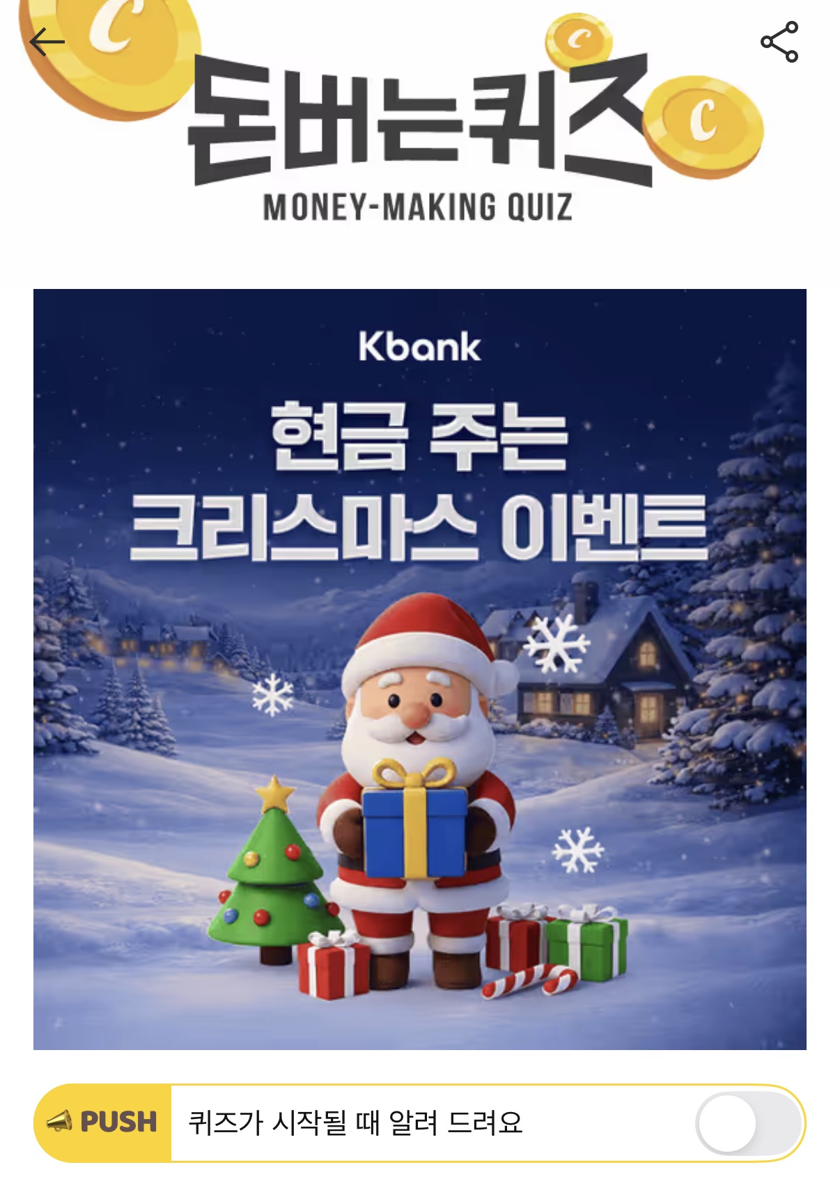캐시워크 돈버는퀴즈 정답 케이뱅크 크리스마스 이벤트