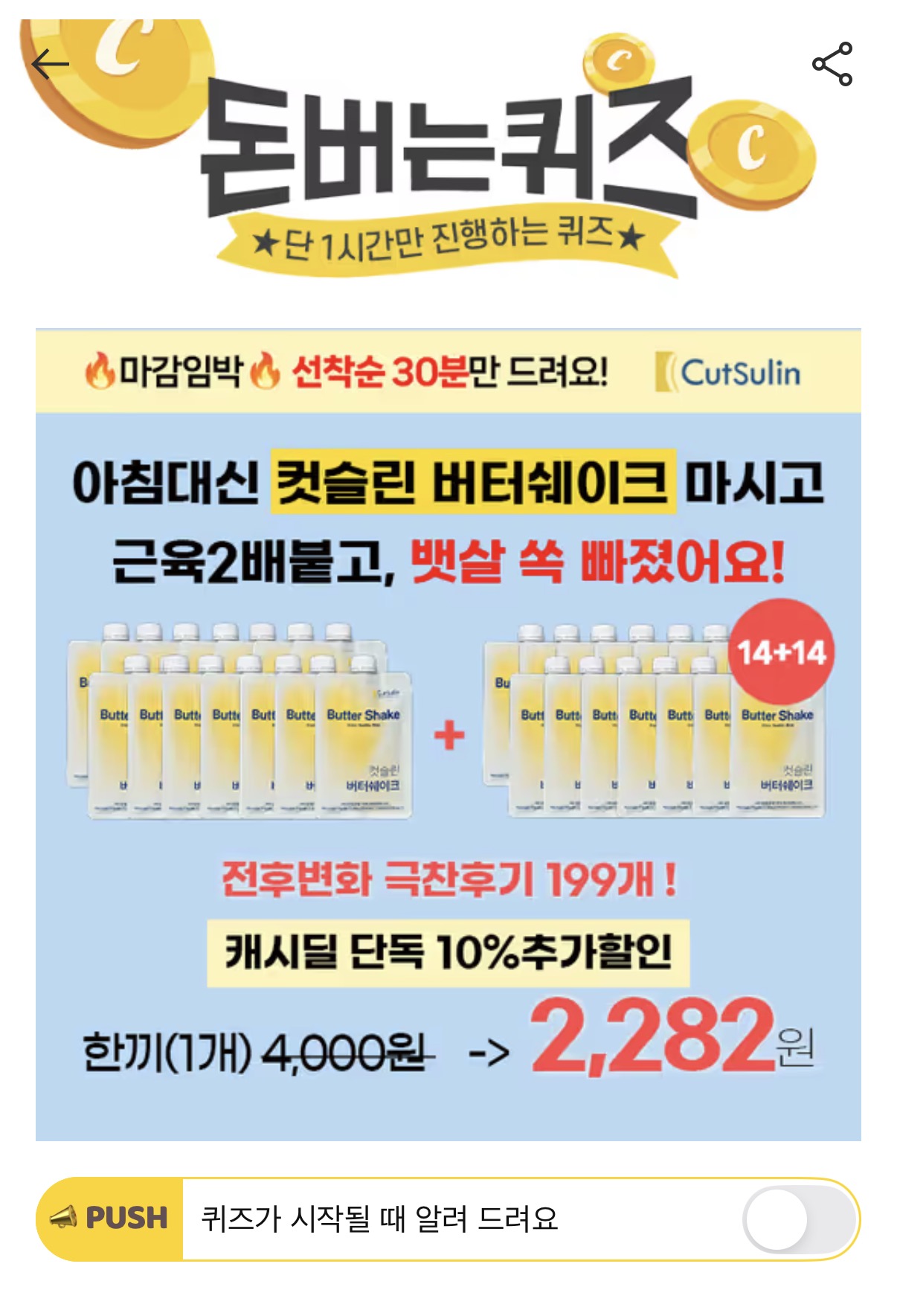 캐시워크 돈버는퀴즈 정답 컷슬린 버터쉐이크