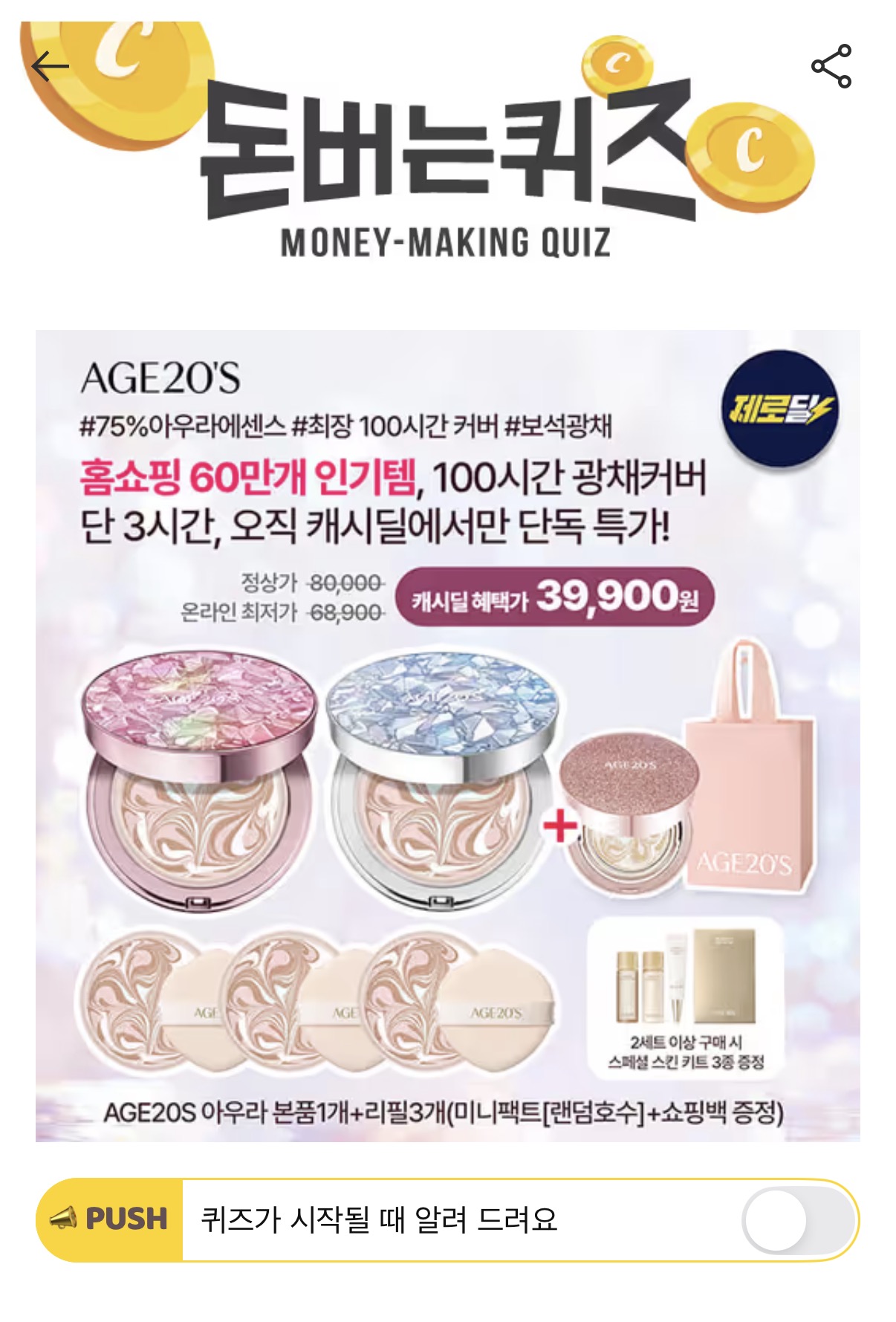 캐시워크 돈버는퀴즈 정답 AGE20S OOO
