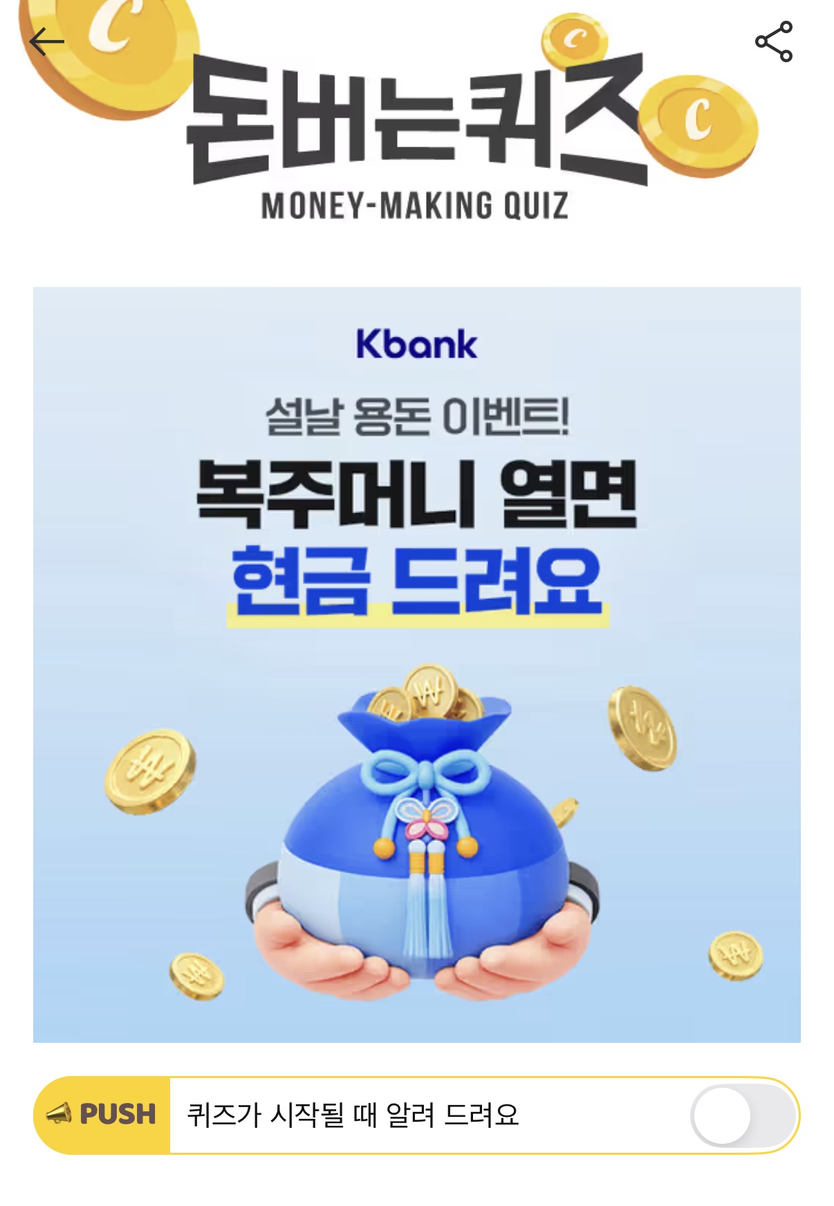 캐시워크 돈버는퀴즈 정답 케이뱅크 복주머니