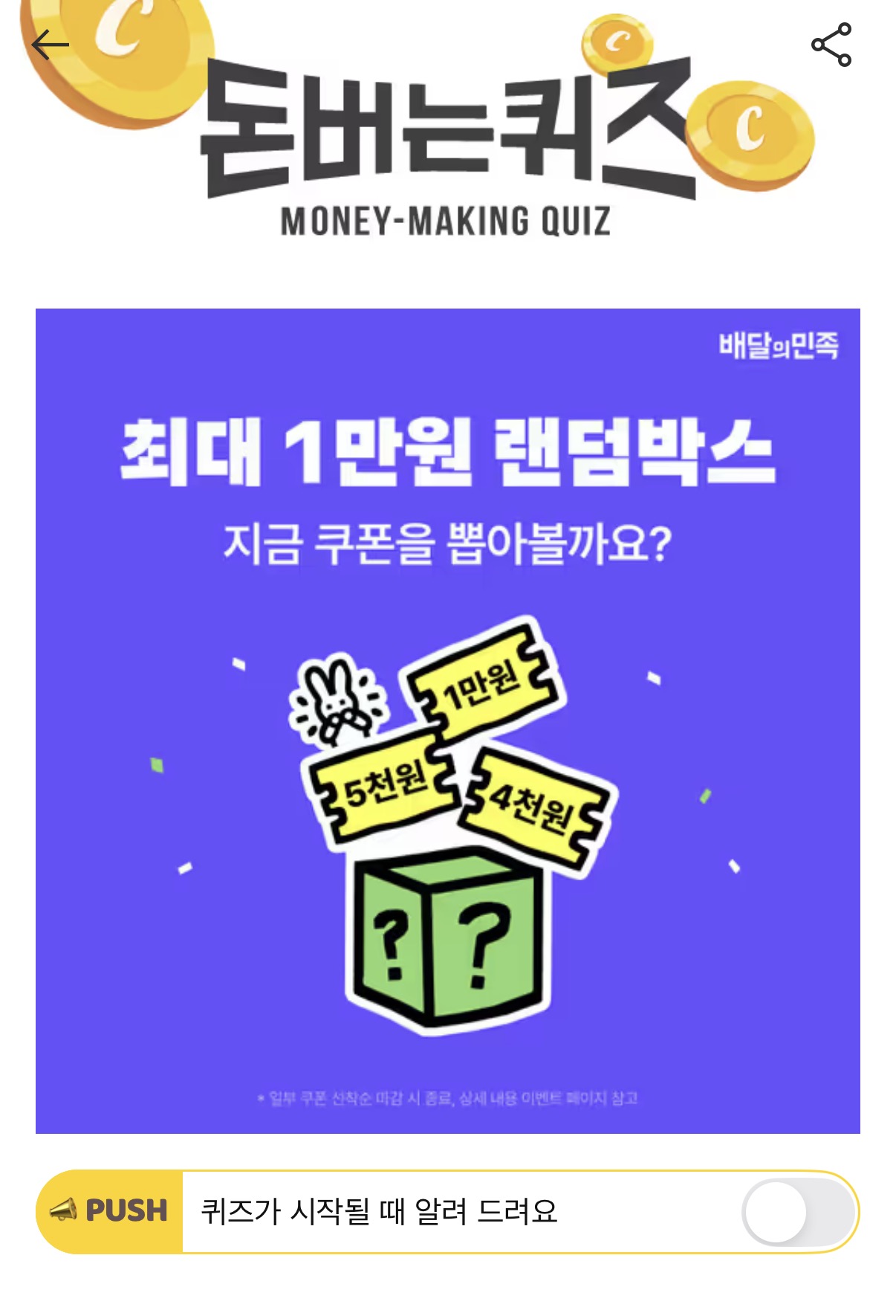 캐시워크 돈버는퀴즈 정답 배달의민족 배민