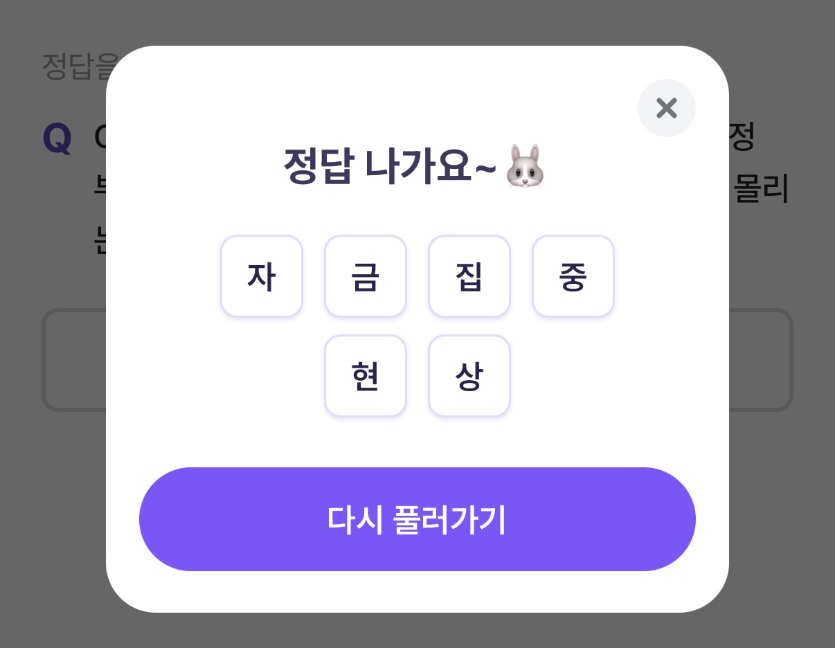 비트버니 오늘의 상식퀴즈 정답 ㅈㄱㅈㅈㅎㅅ