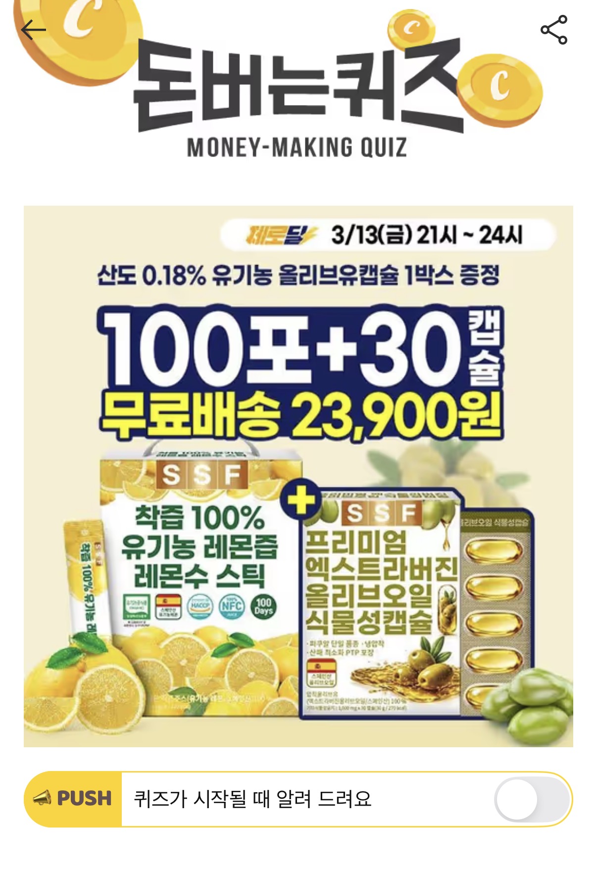 캐시워크 돈버는퀴즈 정답 순수식품 레몬즙 OOOOO원 숫자