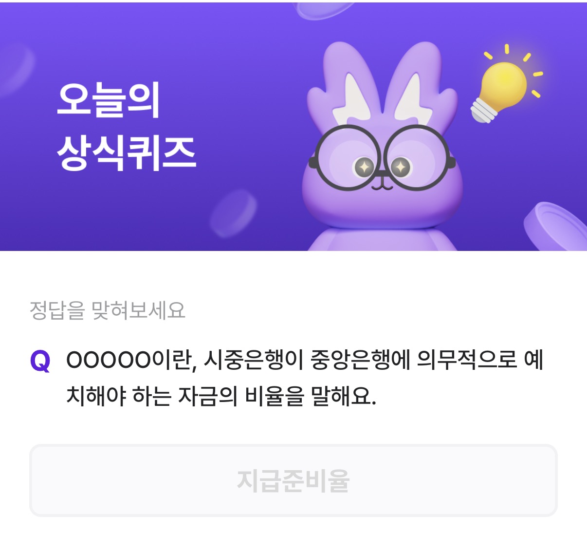 OOOOO이란, 시중은행이 중앙은행에 의무적으로 예치해야 하는 자금의 비율을 말해요.